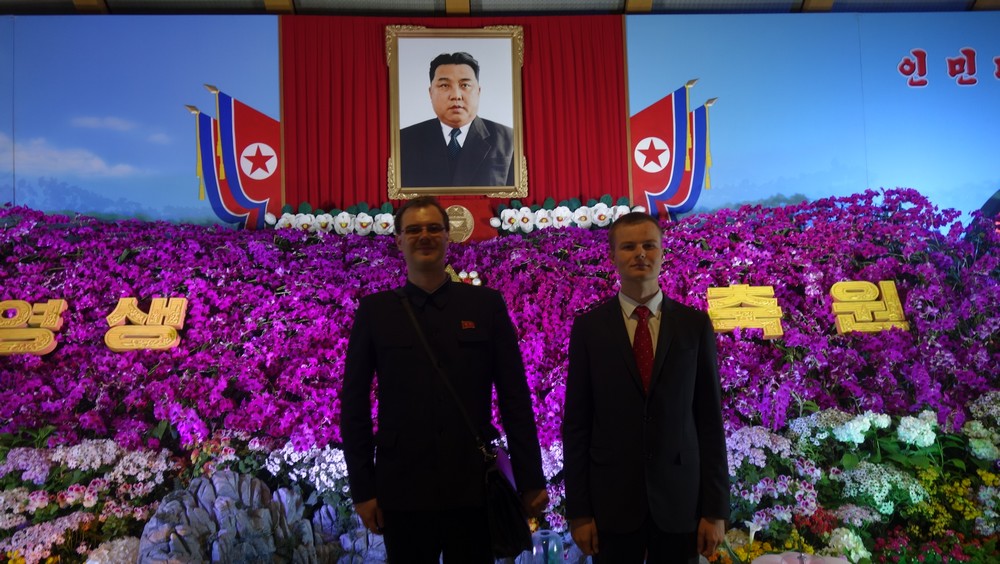 V Den slunce, 15. dubna, největší národní svátek Koreje, ráno uctili členové studijních skupin památku velkých vůdců v Paláci slunce Kumsusan, bývalém prezidentském paláci, kde jsou uchována těla velkého vůdce a velkého generála v životní podobě. Do paláce proudily davy slavnostně oblečených lidí, užívajících si slunečného dne v jeho nádherných zahradách. Většina z nich uctívá památku velkých vůdců poklonou před jejich obrazy na průčelí paláce. Dovnitř do Sálů nesmrtelnosti a expozic s dopravními prostředky velkých vůdců a mapami jejich cest po vlasti i zahraničí vstupují jen organizované útvary.