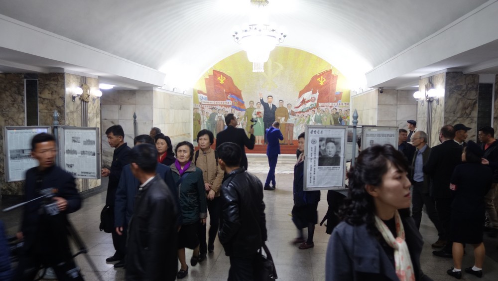 Součástí programu 13. dubna byla jízda pchjongjangským metrem z konečné stanice Puhung (Rozkvět) do stanice Ponghwa (Pochodeň). Metro bylo otevřeno v roce 1973 a je tvořeno dvěma trasami. Známé je svou honosnou výzdobou v duchu socialistického realismu. Delegace přátelství se svezly moderní soupravou korejské výroby, na níž pamětní deska připomíná, že soupravu v roce 2015 dvakrát navštívil vážený soudruh nejvyšší vůdce (jednou před zahájením provozu a podruhé při zkušební jízdě). LCD monitory v soupravě informují cestující nejen o trase, ale také o čase, rychlosti, teplotě a dokonce vlhkosti. Provoz metra je zajištěn v krátkých intervalech, používá ho velké množství cestujících a ceny jízdného jsou tak nízké, že je téměř zdarma. (To platí i pro povrchovou městskou hromadnou dopravu.) Ve stanicích hraje revoluční hudba a je zde vystaven denní tisk jako Rodong sinmun (Noviny práce) a Pchjongjang sinmun (Pchjongjangské noviny).