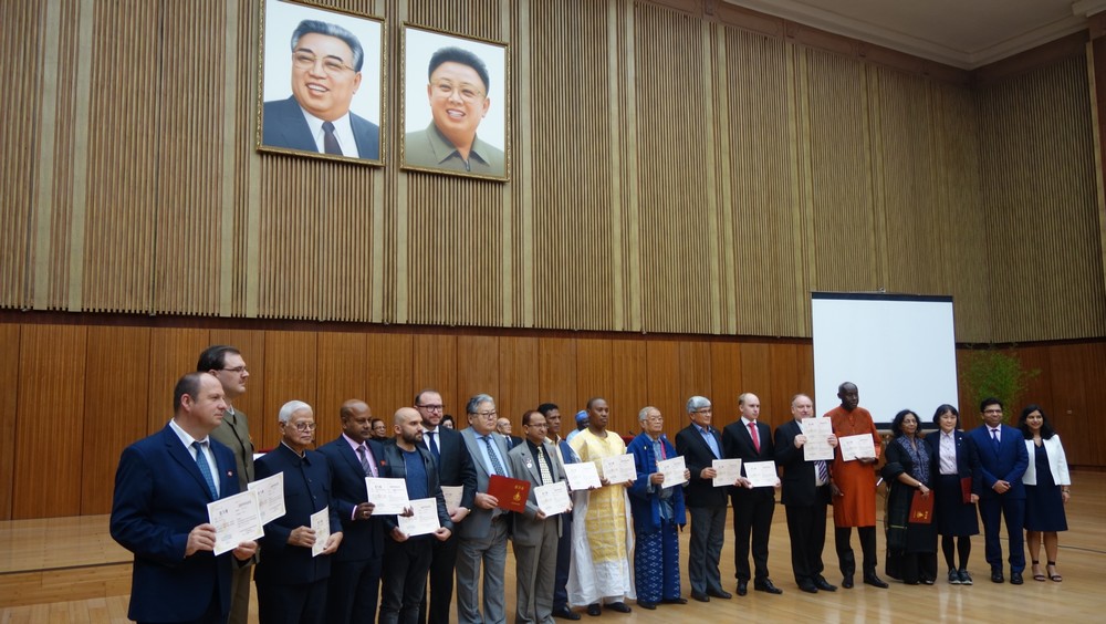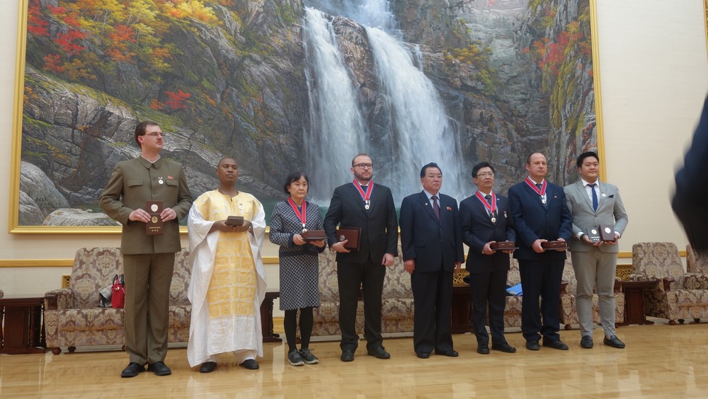 Sedm zahraničních účastníků převzalo odpoledne v paláci Nejvyššího lidového shromáždění Řád přátelství I. a II. stupně za práci pro rozvoj vztahů přátelství a spolupráce s KLDR. Řád přátelství I. stupně byl udělen čtyřem osobnostem z Mongolska, Rakouska, Ruska a Thajska, Řád přátelství II. stupně třem dalším, mezi nimi 1. místopředsedovi Společnosti česko-korejského přátelství Pektusan a České skupiny pro studium a uskutečnění myšlenky čučche soudruhu Lukáši Vrobelovi.