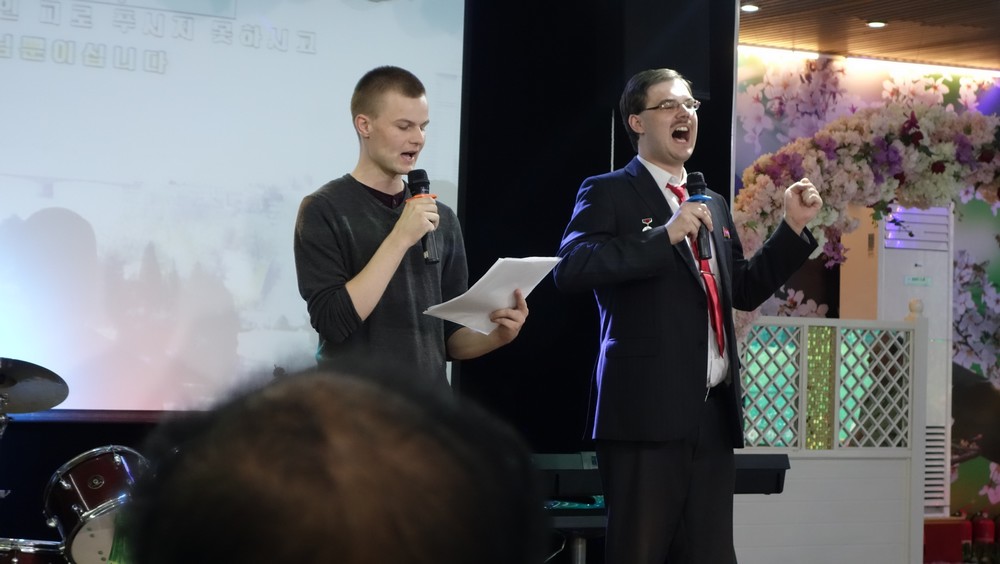 Zpěv revolučních písní v restauraci golfového hřiště u hotelu Sosan