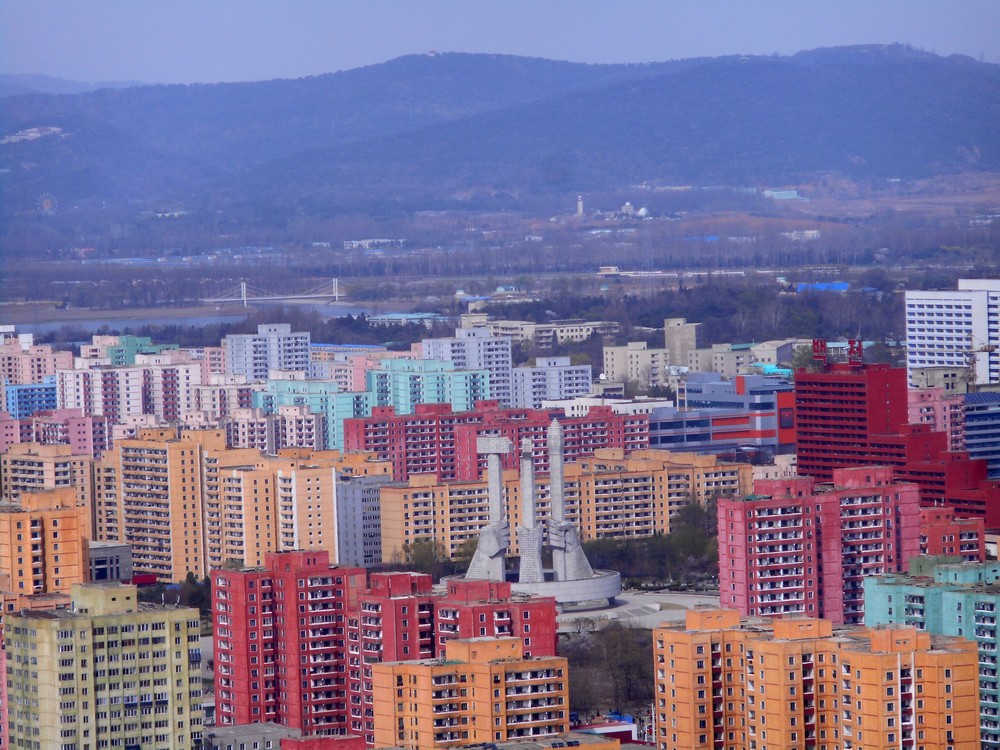 Moderní Pchjongjang v pohledu z Vítězného oblouku