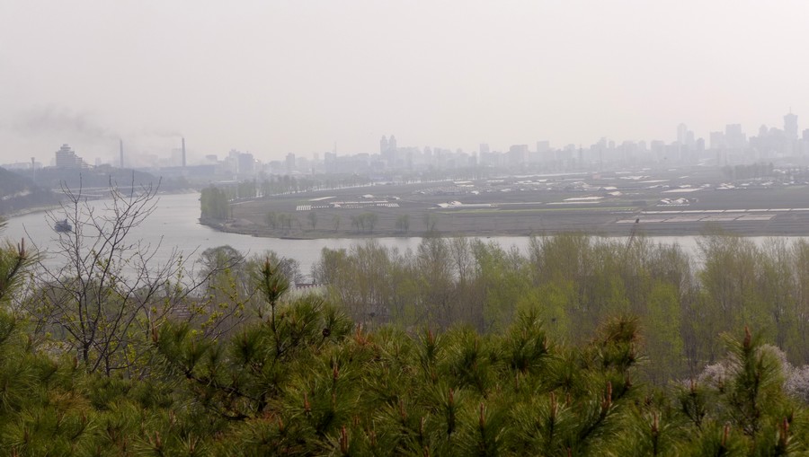 Z vyhlídkového pavilonu na kopci Mangjong je vidět památník v místě, kde byl v r. 1866 zničen americký ozbrojený parník Generál Sherman.