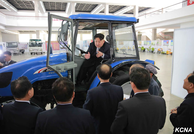 Vida se zářivým úsměvem ve tváři nový typ traktoru, autobusu, nákladního automobilu a jiné strojírenské produkty, vyrobené našimi vlastními silami a s původní technologií a surovinami, opakovaně s uspokojením konstatoval, že vypadají velmi pěkně a velkolepě. Poznamenal, že výstava byla příhodným výsledkem nastolení přesvědčení a optimismu všech vojsk a všeho lidu ve všeobecné službě za budování prosperujícího národa, třímajíce vysoko heslo upřednostňování vlastního rozvoje.