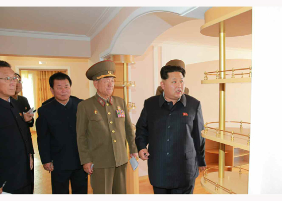Na prehliadke bol sprevádzaný Hwang Pyong So, Kim Ki Nam, Kim Yang Gon, O Su Yong, Jo Yong Won a Ma Won Chun.