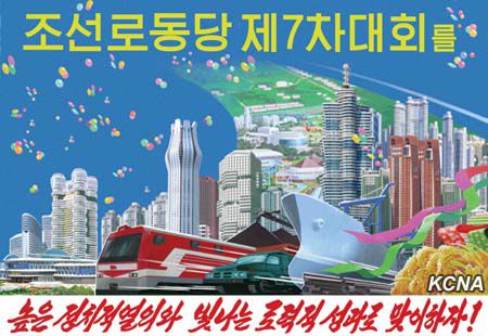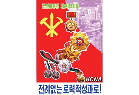 Pchjongjang 4. prosince 2015 (KCNA) – Nové plakáty byly vytvořeny vydavatelstvím Korejské strany práce, výtvarným studiem Mansude, Korejským ústředním studiem výtvarných umění a pchjongjangskou Vysokou školou výtvarných umění na počest 7. sjezdu Korejské strany práce (KSP).