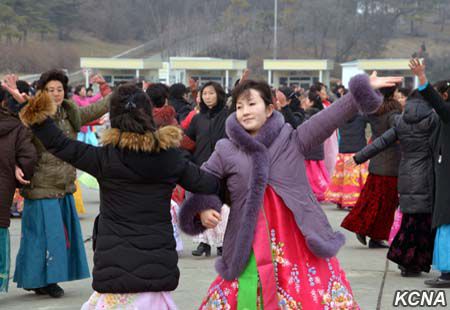 Pchjongjang, 24. prosince 2015 18:03 KST (KCNA) – Na náměstí Vítězného oblouku v Pchjongjangu se ve čtvrtek konala taneční oslava funkcionářek a členek Svazu žen u příležitosti 24. výročí pověření vůdce Kim Čong Ila vrchním velením Korejské lidové armády.