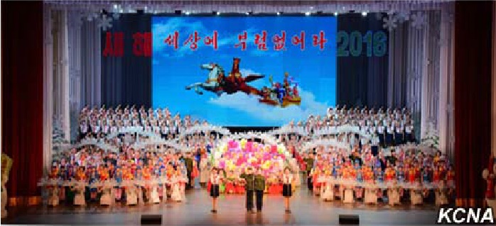 Představení začalo prologem „Nejšťastnější den v přítomnosti váženého maršála“. Účinkující přidali novoroční pozdravy maršálu Kim Čong Unovi, kterému popřáli hodně zdraví.