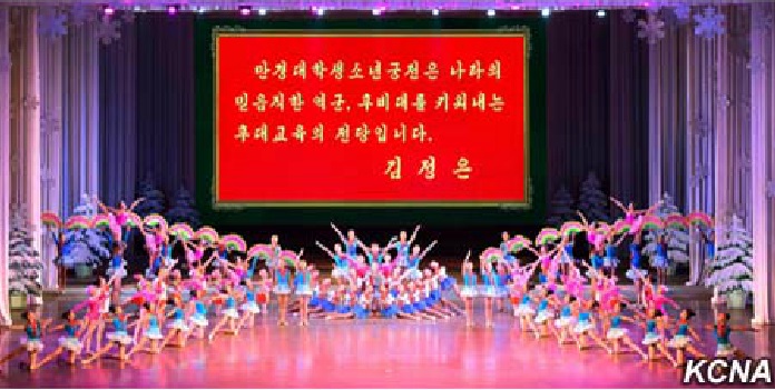 Pchjongjang, 1. ledna (KCNA) – Školáci v pátek sehráli novoroční představení „Jsme nejšťastnější na světě“ v Paláci školáků Mangjongdae.
