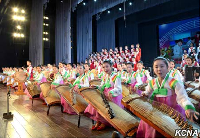 Na jevišti byla představena pestrobarevná vystoupení, včetně sóla a sboru „Kéž se naše píseň rozezní do celého světa“, písně a tance „Generalissimus tančil s námi“, sboru „Generál a děti“ a hudby a tance a vyprávění příběhů školáky v Japonsku „Deník korejského studenta v Japonsku“.