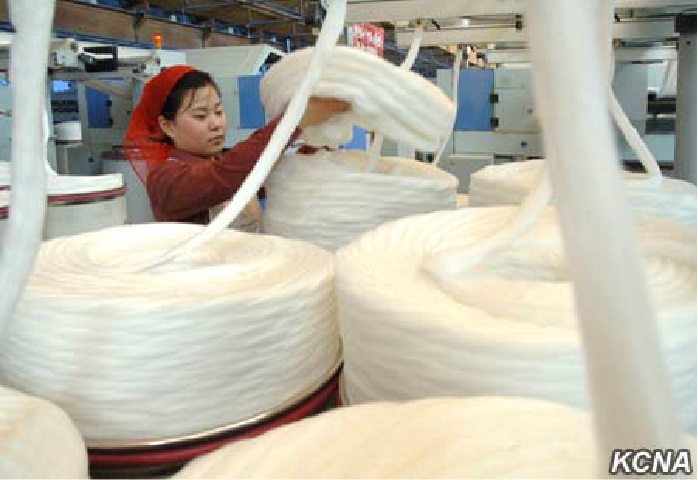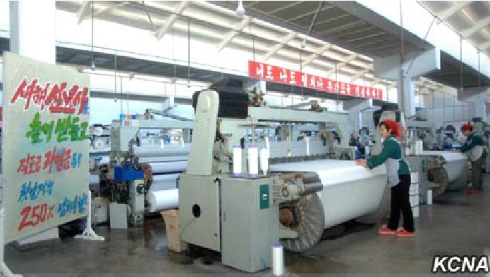 Pchjongjang 6. ledna Čučche 105 (2016) (KCNA) – Zaměstnanci pchjongjangského textilního závodu Kim Čong Suk zvyšují výrobu v srdečné odezvě na novoroční projev nejvyššího vůdce Kim Čong Una.