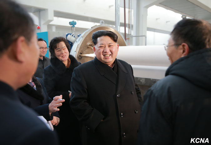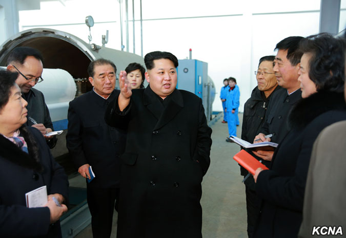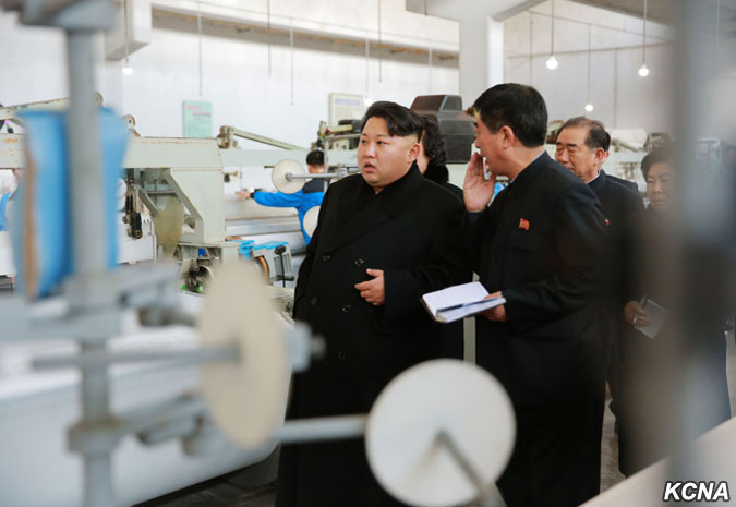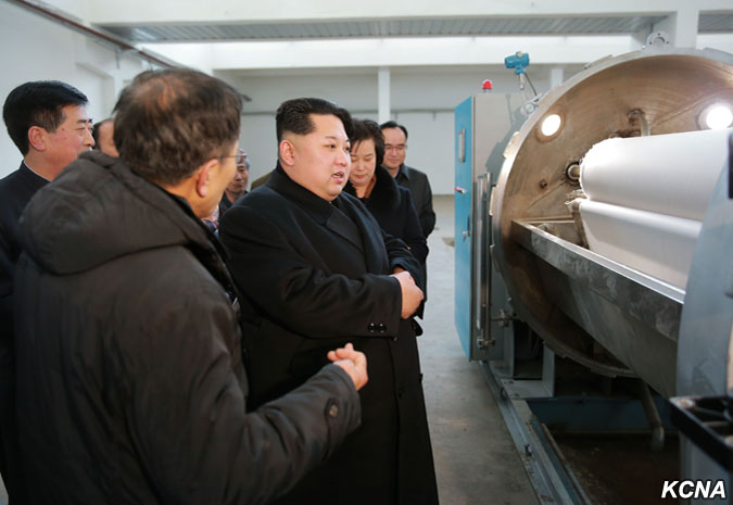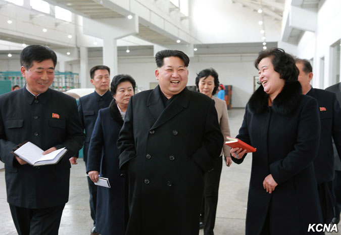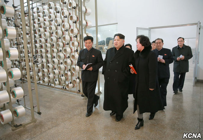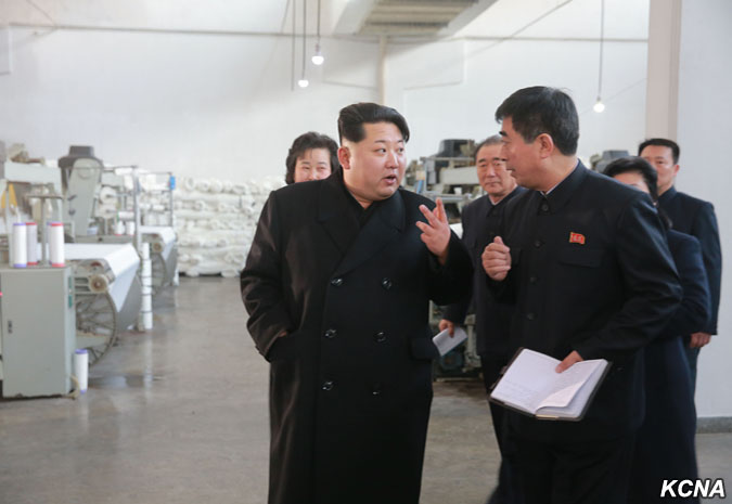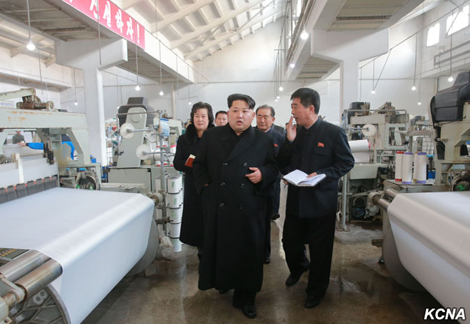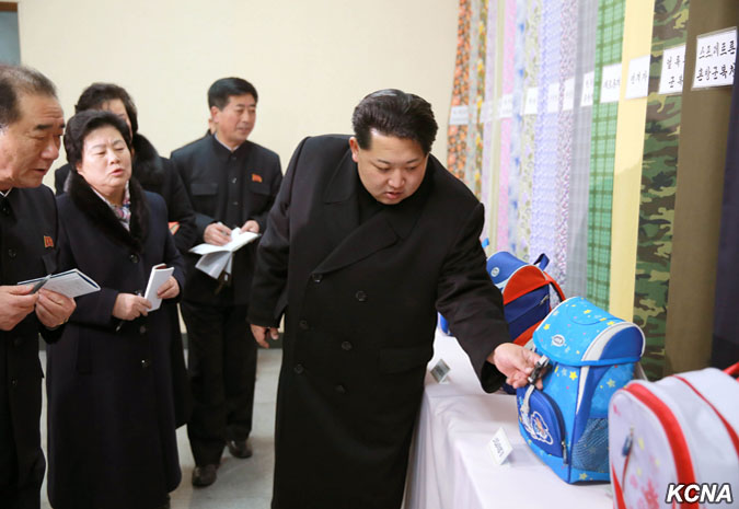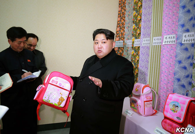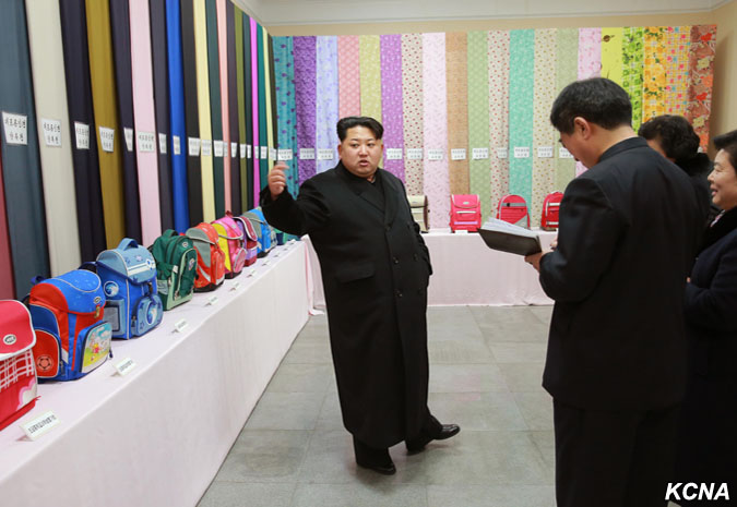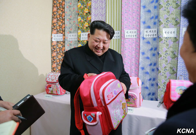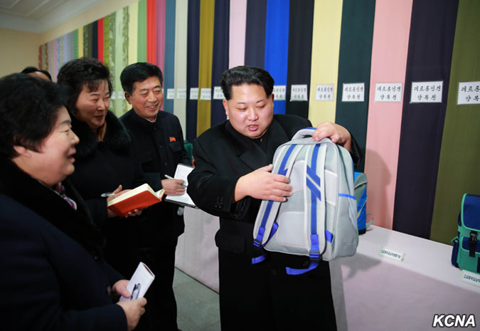Pchjongjang, 28. ledna čučche 105 (2016) (KCNA) – Kim Čong Un, první tajemník Korejské strany práce, první předseda Komise národní obrany KLDR a vrchní velitel Korejské lidové armády, navštívil pchjongjangský textilní závod Kim Čong Suk. Prohlédl si různé druhy školních tašek z látky vyrobené v závodě. Čím déle si člověk prohlíží tašky pro studenty, tím více vypadají módně, řekl a dodal, že jejich styly a barvy jsou rozmanité a mohou soupeřit s těmi z jiných zemí ve všech aspektech, jako je pohodlí, využití a krása. Prohlédl si nově vybudovaný výrobní proces taškového vlákna.