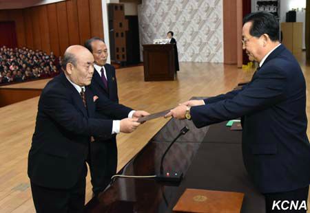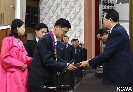 Pchjongjang, 3. února čučche 105 (2016) (KCNA) – Státní akademické hodnosti a tituly byly uděleny intelektuálům s náležitým ceremoniálem v Lidovém paláci kultury ve středu u příležitosti narození vůdce Kim Čong Ila (Dne zářící hvězdy).