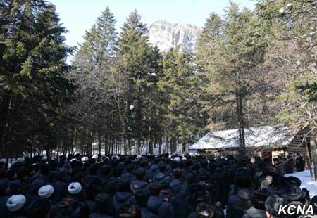 Samčijon, 5. února čučche 105 (2016) (KCNA) – Školní děti a mládež z celé země se setkali v rodišti vůdce Kim Čong Ila v pektusanském tajném táboře v pátek u příležitosti jeho výročí narození.