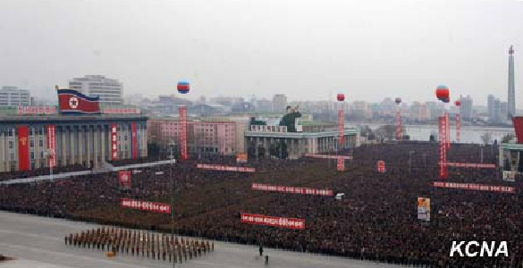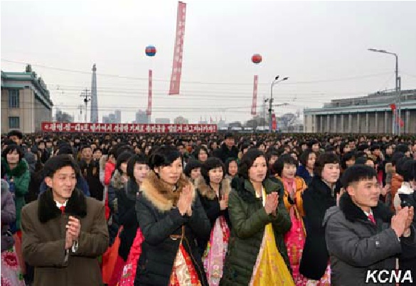 Pchjongjang, 8.února Čučche 105 (2016) (KCNA) – V pondělí se konalo setkání vojska a lidu města Pchjongjangu k oslavě úspěšného vypuštění satelitu Země Kwangmyongsong-4.