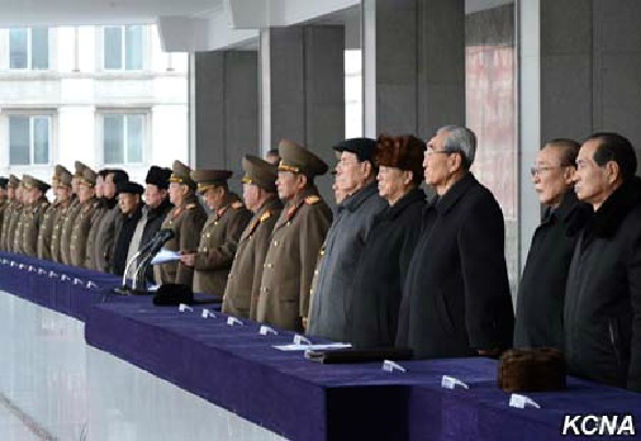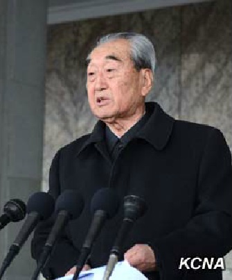 Na tribuně byl také šéf pchjongjangské mise Antiimperialistické národní demokratické fronty a zámořští Korejci.