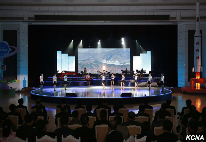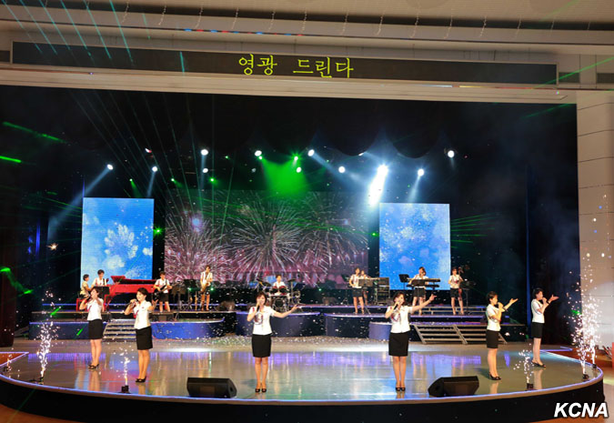 Součástí banketu bylo představení hudební skupiny Moranbong k oslavě úspěšného vypuštění satelitu Kwangmyongsong-4.