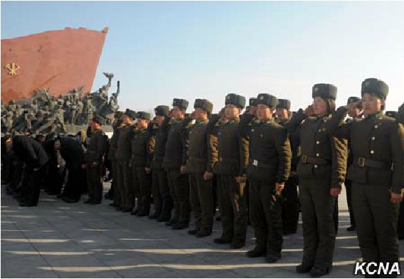 Vojáci, lid a školní mládež a děti po celé zemi navštívili sochy velkých vůdců a portréty usměvavých vůdců.