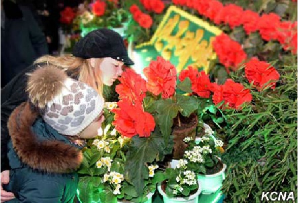 Nekonečný proud lidí navštívil místo konání 20. festivalu kimčongilií (květin, pozn. překl.) a místa konání výstav kimčongilií v každé provincii.