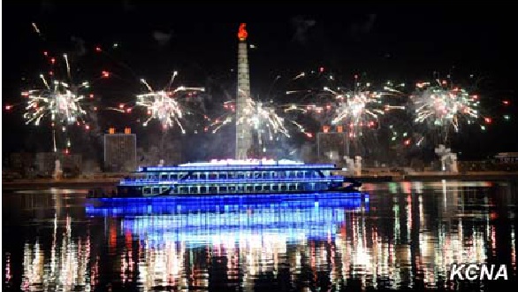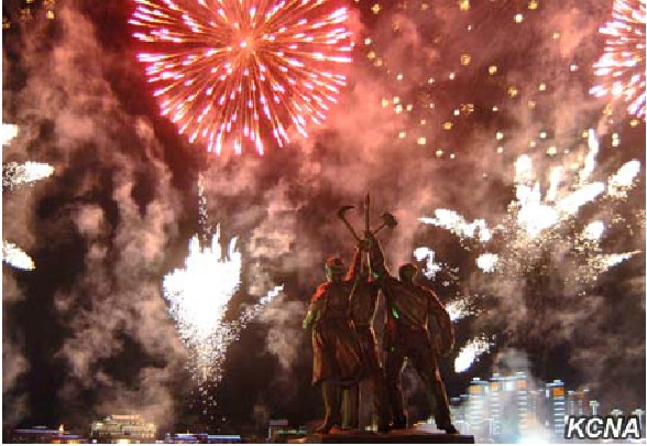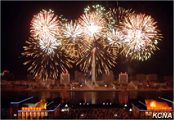 Ulice a obce Pchjongjangu, každá provincie, město a kraj a průmyslové podniky a farmy byly slavnostně vyzdobeny.