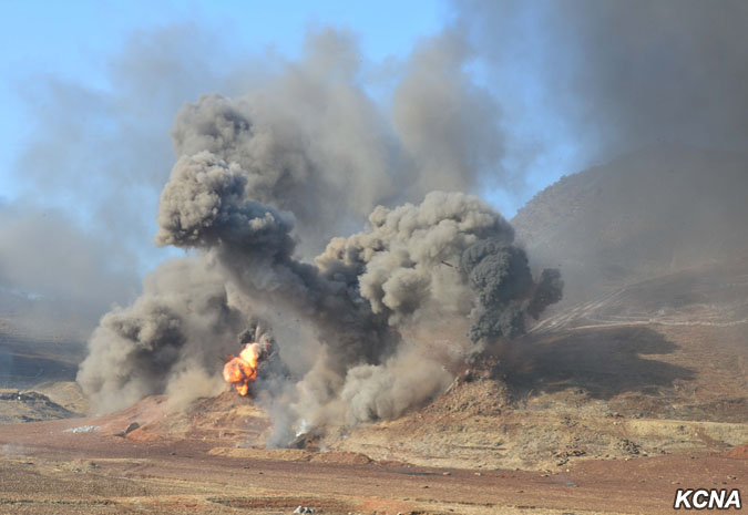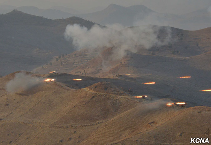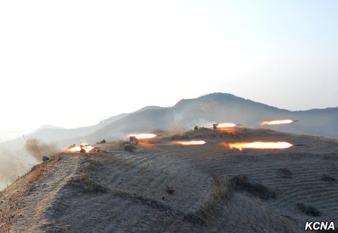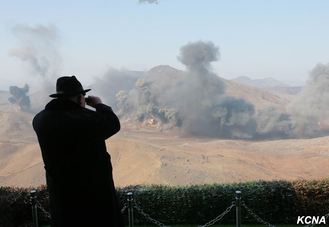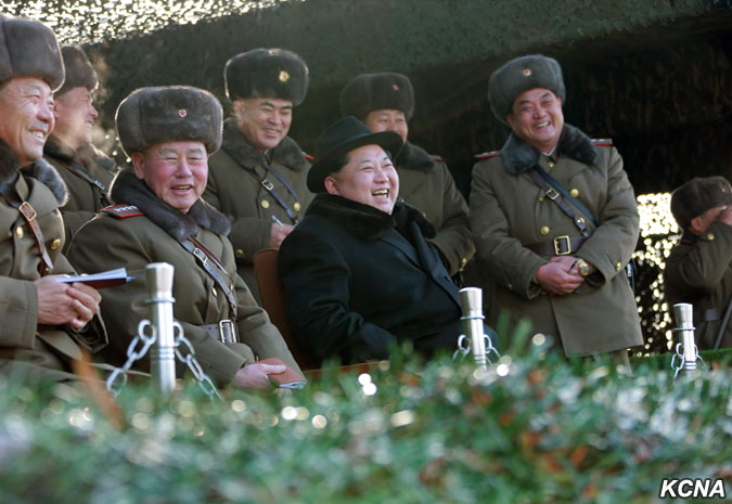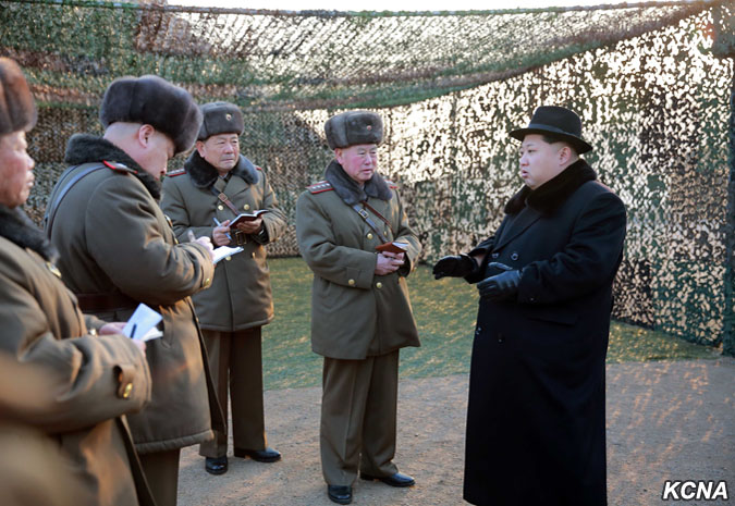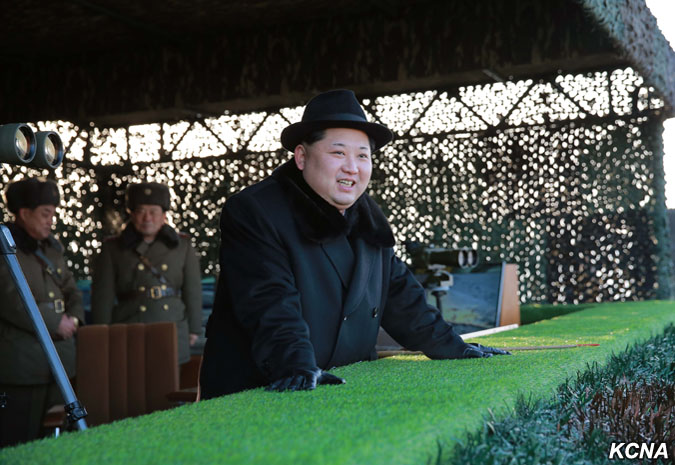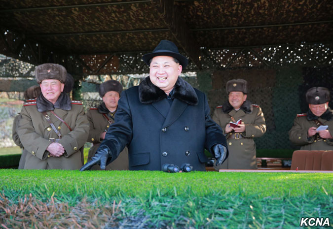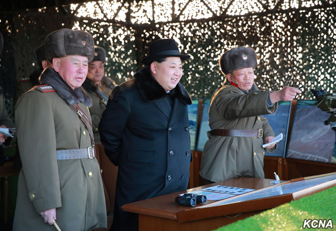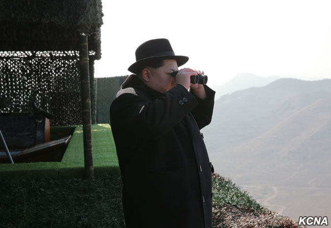 Po obdržení zprávy o plánu manévrů na pozorovatelně vrchní velitel Kim Čong Un řídil manévry.