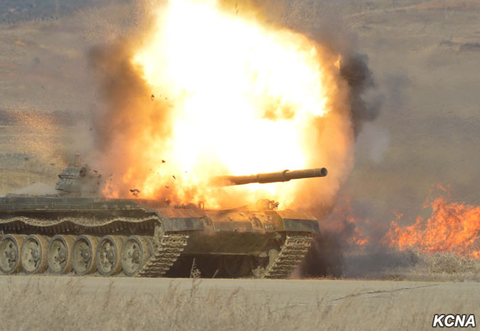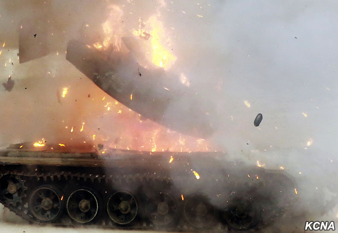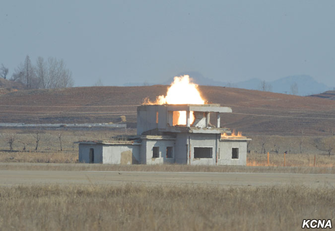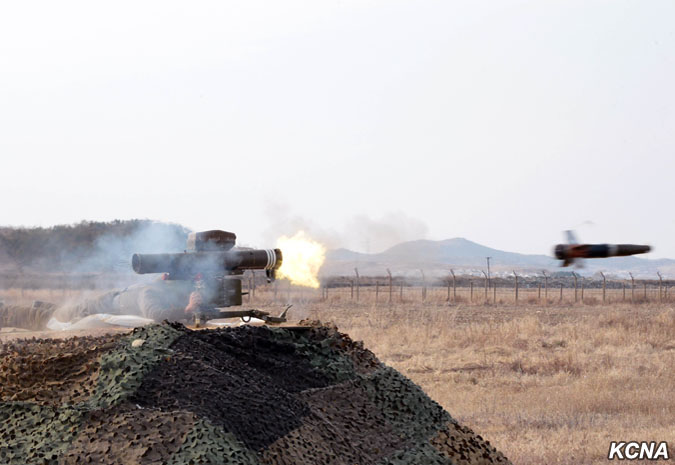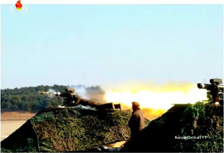 Kim Čong Un, první tajemník Korejské strany práce (KSP), první předseda Komise národní obrany KLDR a vrchní velitel Korejské lidové armády (KLA), zkontroloval cvičnou střelbu z nové generace protitankových řízených zbraní.Byl doprovázen vicemaršálem KLA Hwang Pjong So, ředitelem Generálního politického byra KLA, armádním generálem Ri Mjong Su, náčelníkem generálního štábu KLA a dalšími vysokými vojenskými činiteli, stejně jako řídícími zástupci odboru Ústředního výboru KSP.