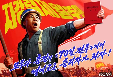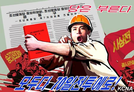 Pchjongjang, 3. a 5. března čučche 105 (2016) (KCNA) – V KLDR byly vydány nové plakáty, aby podpořily vojsko a lid v 70denní kampani věrnosti ke slavnému pozdravení sedmého sjezdu Korejské strany práce (KSP) jako jedni z vítězů. Plakáty s heslem „Staňme se všichni čestnými vítězi v 70denní kampani věrnosti!„ zobrazují všechny pracující v dynamickém postupu ke květnu. Plakát „Strana vás všechny vyzývá, abyste provedli 70denní kampaň!“ odráží společnou výzvu Ústředního výboru a Ústřední vojenské komise KSP.