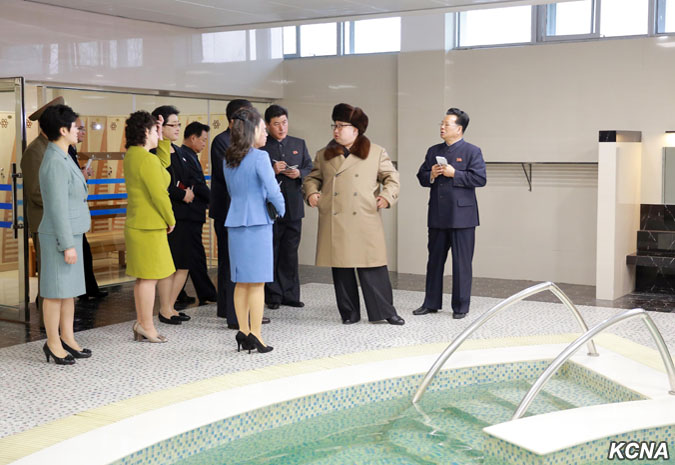 Následující etapou jeho dozoru byl nově postavený zdravotní komplex. Procházeje jídelnou, koupelnou, brouzdalištěm, holičstvím, kosmetickým salonem a dalšími jeho částmi, řekl, že komplex je bezchybný v architektonickém stylu i stavební kvalitě a že by měl zahájit svou činnost v plném rozsahu v plných přípravách na Den Slunce (15. dubna, výročí narození Kim Ir Sena, pozn. překl.).