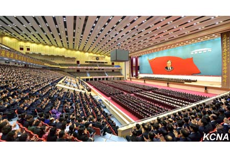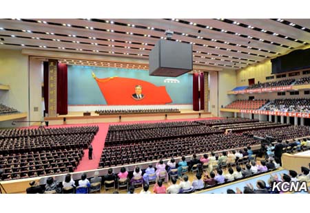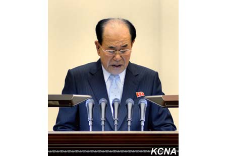 Kim Jong Nam, člen prezídia politického byra Ústředního výboru Korejské strany práce a předseda prezídia Nejvyššího lidového shromáždění KLDR přednesl na setkání zprávu.