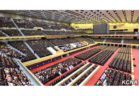 Pchjongjang, 14. dubna čučche 105 (2016) (KCNA) – Ve čtvrtek se konalo národní setkání na pchjongjangském krytém stadionu u příležitosti 104. výročí narození prezidenta Kim Ir Sena /Kim Il Sunga/ (Dne slunce).