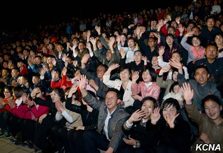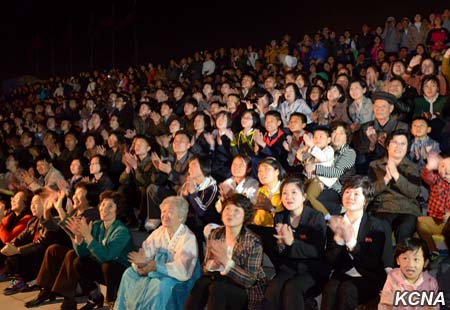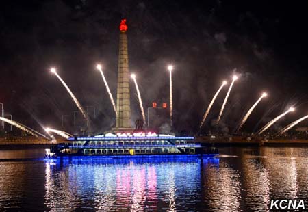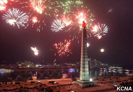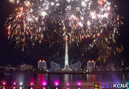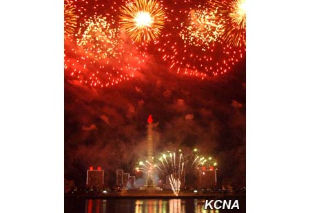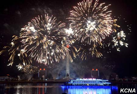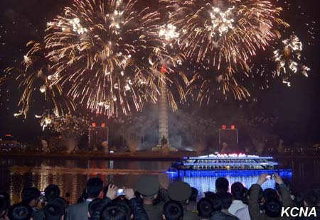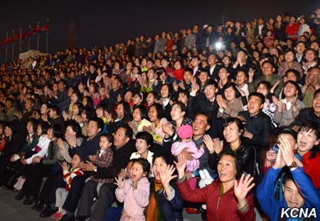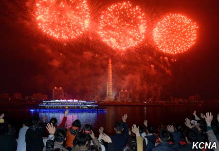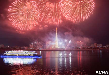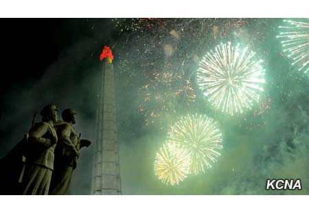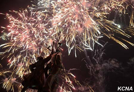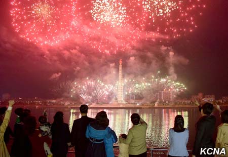 Fascinující ohňostroje, vydávající jasné paprsky, jako by ukázaly světu harmonický celek armády a lidu KLDR, sjednocený kolem nejvyššího vůdce Kim Čong Una, který je nejsilnější národní silou Kim Ir Senovy a Kim Čong Ilovy Koreje.