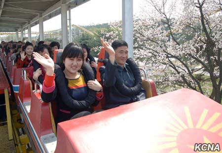 Lid, včetně mládeže a studentů, zaplnil Kim Ir Senovo náměstí, kopec Mansu a most Okrju přes řeku Tedong.