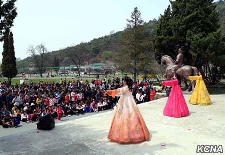 Vojsko a lid všech sociálních postavení, včetně mládeže a studentů, také navštívili sochy a portréty usměvavých velkých vůdců na kopci Mansu a v dalších částech země a vzdali jim hold.