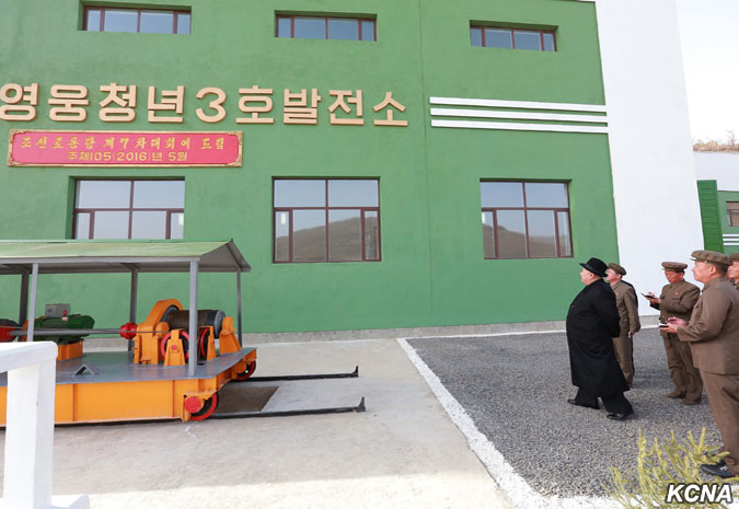 Pchjongjang, 23. dubna čučche 105 (2016) (KCNA) – Kim Čong Un, první tajemník Korejské strany práce, první předseda Komise národní obrany KLDR a vrchní velitel Korejské lidové armády, poskytl terénnní pokyny Elektrárně mládeže pektusanských hrdinů č. 3, úspěšně dokončené jako dárek oddanosti mladých lidí, mistrů moci mládeže, představený 7. sjezdu KSP.