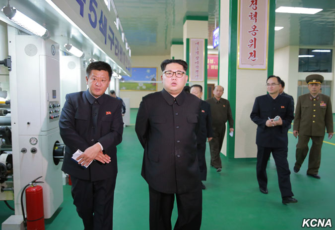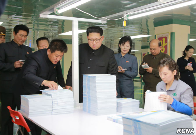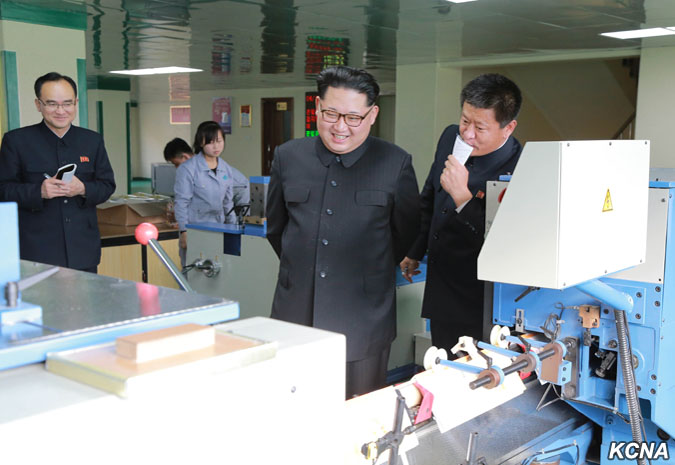 Pchjongjang, 19. dubna čučche 105 (2016) (KCNA) – Kim Čong Un, první tajemník Korejské strany práce (KSP), první předseda Komise národní obrany KLDR a vrchní velitel Korejské lidové armády, poskytl terénní návod nově postavené továrně sešitů Mindulle.