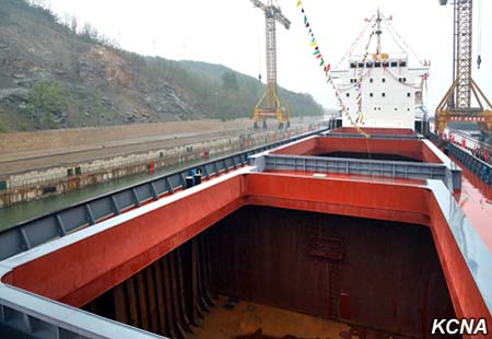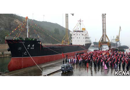 Loď byla spuštěna s patřičným obřadem v neděli v loděnici Rjongnam.