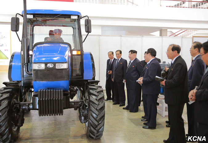 Vida se zářivým úsměvem ve tváři nový typ traktoru, autobusu, nákladního automobilu a jiné strojírenské produkty, vyrobené našimi vlastními silami a s původní technologií a surovinami, opakovaně s uspokojením konstatoval, že vypadají velmi pěkně a velkolepě. Poznamenal, že výstava byla příhodným výsledkem nastolení přesvědčení a optimismu všech vojsk a všeho lidu ve všeobecné službě za budování prosperujícího národa, třímajíce vysoko heslo upřednostňování vlastního rozvoje.