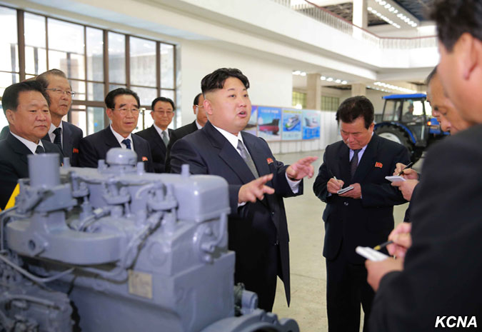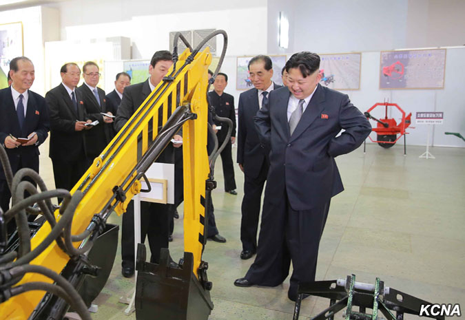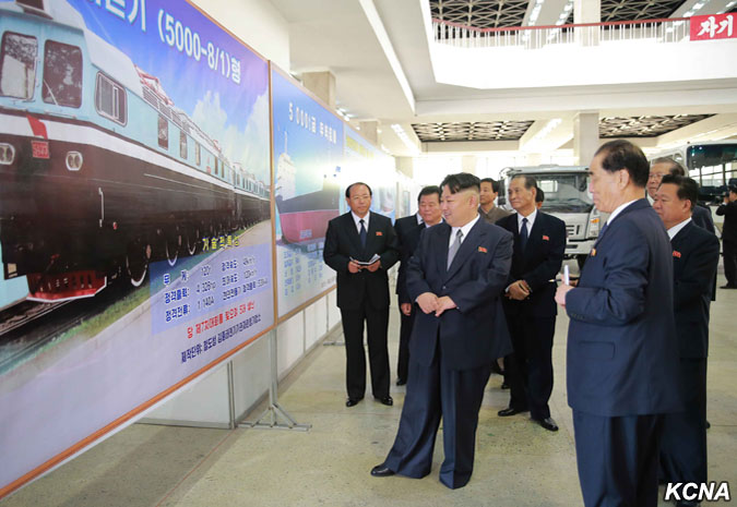 Poté, co zhlédl prostřednictvím vizuálních prostředků vysoce efektivní elektrickou lokomotivu vyrobenou v Kim Čong Theově komplexu elektrických lokomotiv, víceúčelovou rybářskou loď třídy „Hwanggumhe“, postavenou v oblasti rybolovu a 5000tunovou obchodní nákladní loď, postavenou loděnicemi Rjongnam, řekl s velkým potěšením, že uskutečnili hrdé úspěchy přispívající k rozvoji železniční dopravy, odvětví rybolovu a námořní dopravy v zemi.