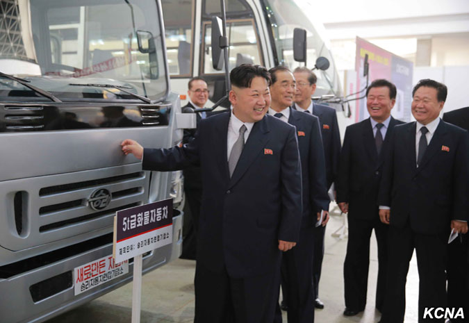 Ocenil pětitunový nákladní automobil se 115 HP dieselovým motorem, nově vyvinutý v Automobilovém komplexu Sungri i nový typ autobusu, vyrobený Autobusovým závodem Čchongdžin.