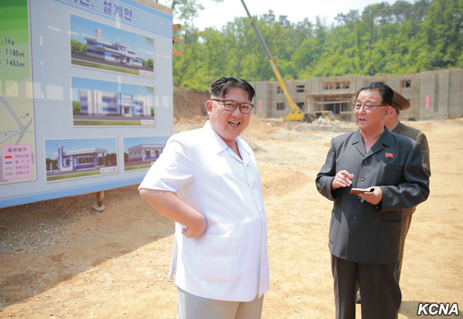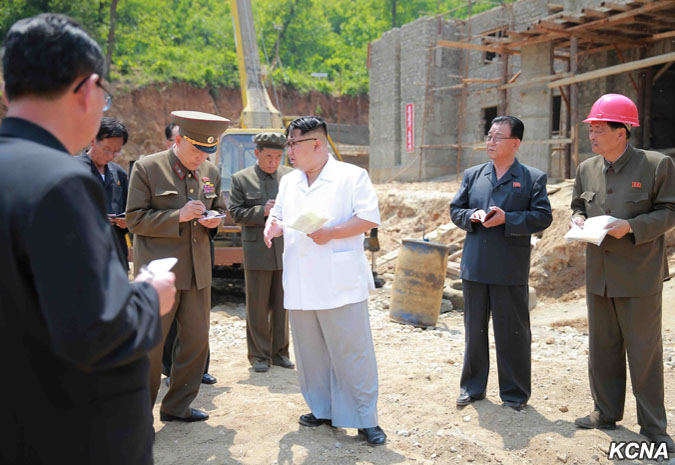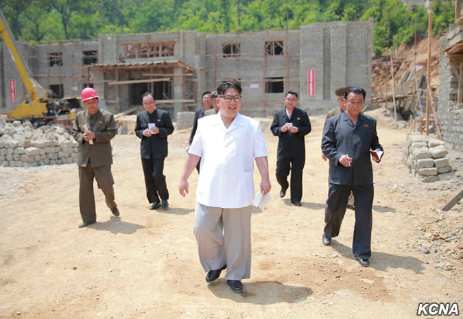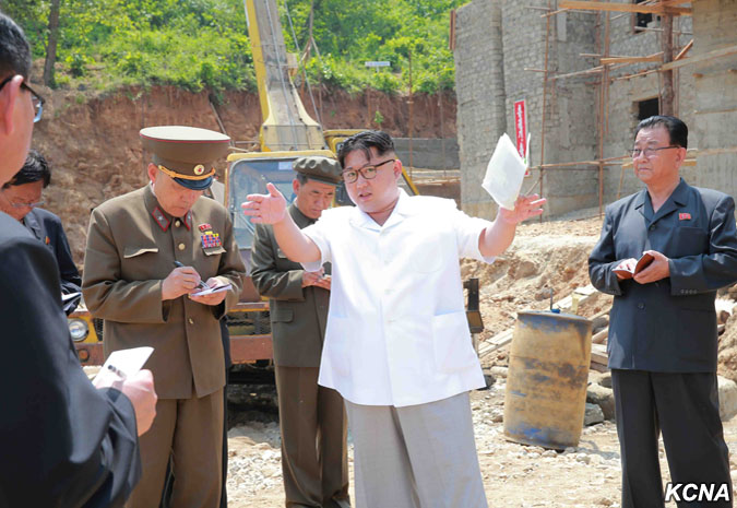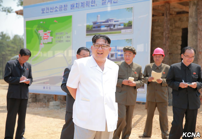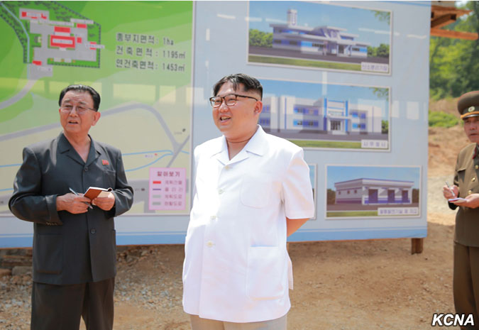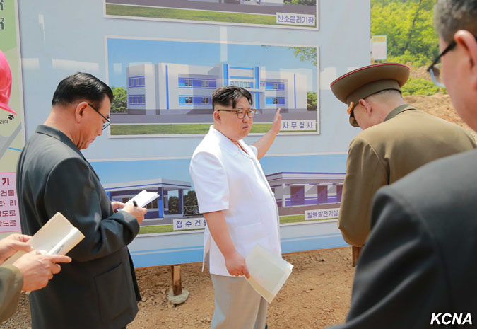 Pchjongjang, 30. května čučche 105 (2016) (KCNA) – Kim Čong Un, předseda Korejské strany práce, první předseda Komise národní obrany KLDR a vrchní velitel Korejské lidové armády, poskytl polní pokyny stavbě továrny na lékařský kyslík.