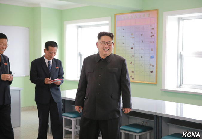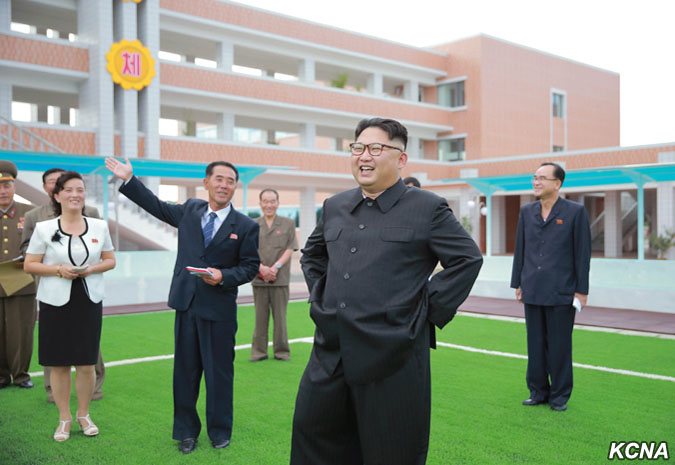 Pchjongjang, 3. července čučche 105 (2016) (KCNA) – Kim Čong Un, předseda Korejské strany práce, předseda Komise pro státní záležitosti KLDR a vrchní velitel Korejské lidové armády, dal polní návod pro Pchjongjangskou sirotčí střední školu, která byla úspěšně postavena jako model a ikona prostředí středního všeobecného vzdělávání.