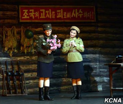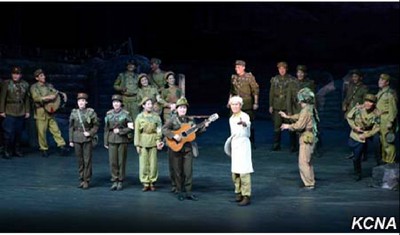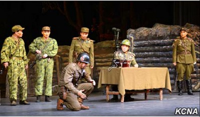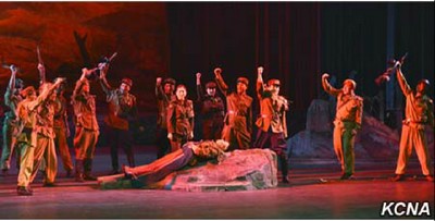 Pchjongjang, 8. července čučche 105 (2016) (KCNA) – Revoluční drama „Následujíce prapor vítězství“ bylo uvedeno na jevišti Národního divadla v pátek u příležitosti 22. výročí úmrtí prezidenta Kim Ir Sena (Kim Il Sunga).