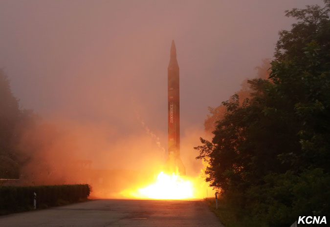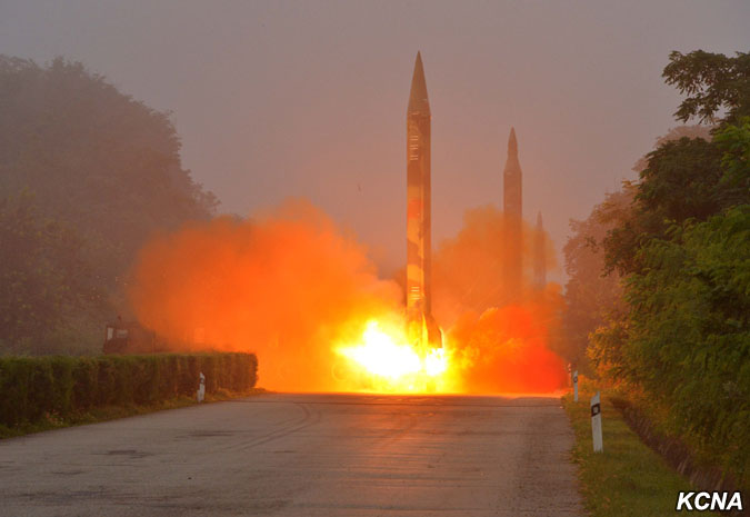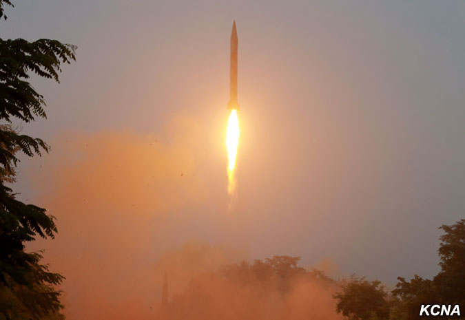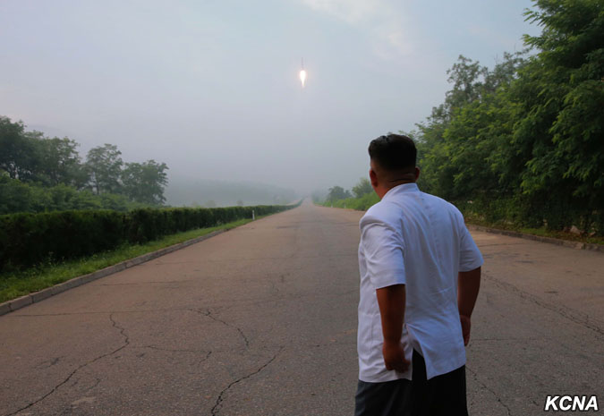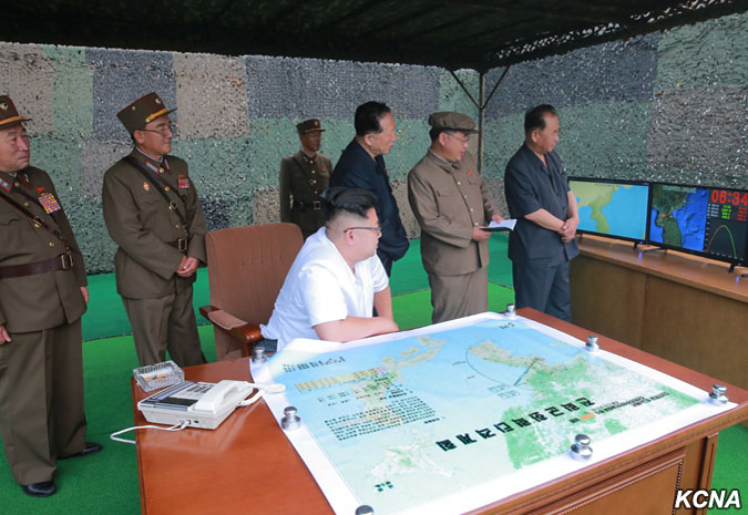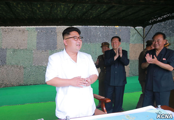 Pchjongjang, 20. července čučche 105 (2016) (KCNA) – Vrchní velitel Korejské lidové armády (KLA) Kim Čong Un, předseda Korejské strany práce (KSP) a předseda Komise pro státní záležitosti KLDR, poskytl polní pokyny cvičení pro odpálení balistické rakety hwasongských dělostřeleckých jednotek strategických sil KLA.