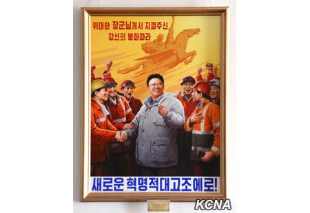 Mezi nimi jsou plakáty „Nechť velká země navždy prosperuje!“ a „Dynamicky postupujme na cestě nezávislosti, songunu a socialismu, ukázané velkými vůdci!“ Odrážejí víru vojsk a lidu KLDR dovršit proces revoluce čučche, majíce velké vůdce ve vysoké úctě.