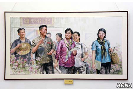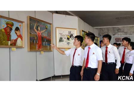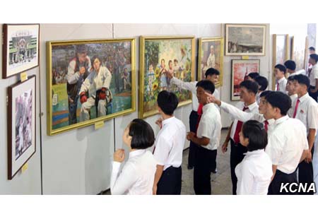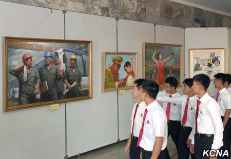 Vystaveny jsou zde také obrazy zobrazující pracoviště, dynamicky se pohybující na cestě k uskutečnění velkého náporu v budování ekonomické síly avojska a mladé lidi, kteří vykonávají poučné zázraky a výkony, zplošťující i vysoké hory v odezvě na výzvu Korejské strany práce. Také jsou zde obrazy, které se zabývají štěstím lidu a školní mládeže a studentů.