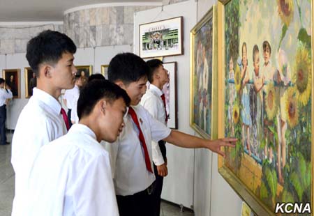 V místě konání výstavy jsou ukázána umělecká díla zobrazující ušlechtilé osobnosti prezidenta Kim Ir Sena (Kim Il Sunga) a vůdce Kim Čong Ila.
