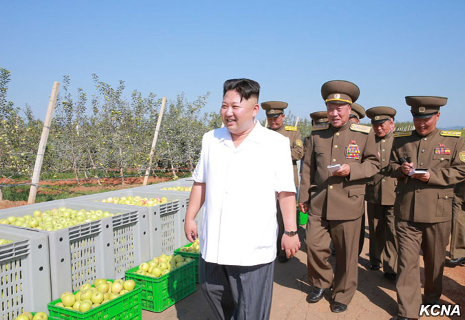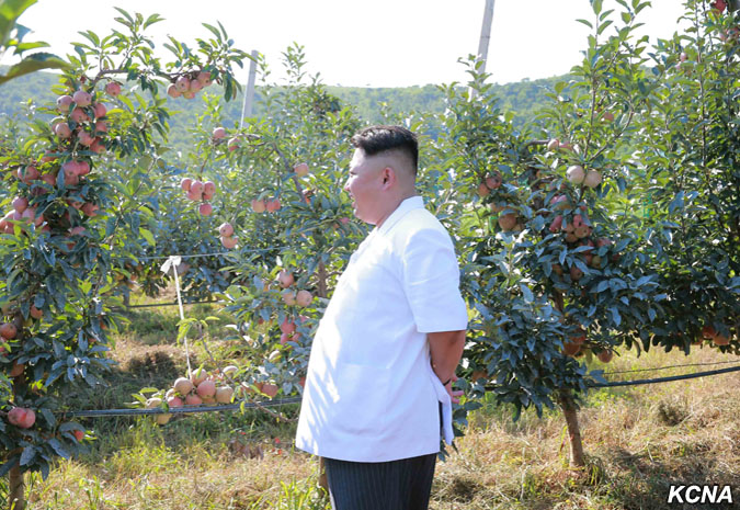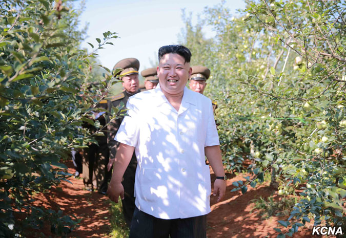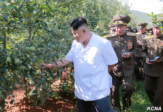 Pchjongjang, 18. srpna čučche 105 (2016) (KCNA) – Kim Čong Un, předseda Korejské strany práce, předseda Komise pro státní záležitosti KLDR a vrchní velitel Korejské lidové armády, poskytl polní pokyny Kombinované ovocné farmě Tedonggang (Taedonggang).