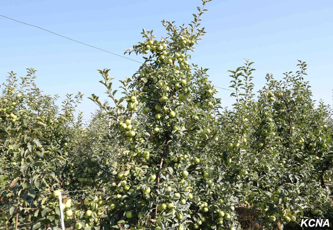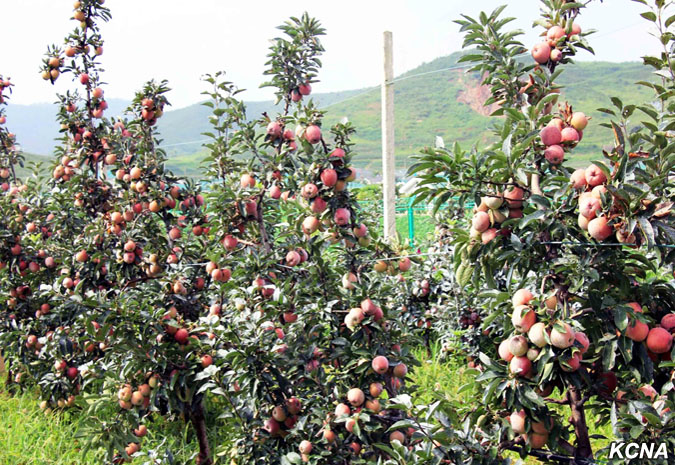 Prohlédl si ovocnou farmu řka, že funkcionáři a pracující z farmy vykonali hodně práce, protože otevřeli jasnou perspektivu dosažení cíle produkce ovoce, stanoveného stranou v tomto roce a zároveň dodali občanům Pchjongjangu raná jablka.