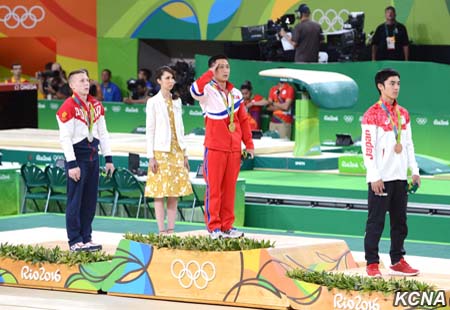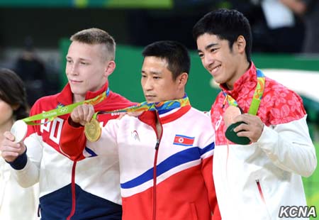 V mužské gymnastice přeskoku 15. srpna Ri Se Gwang porazil svého ruského, japonského a rumunského soupeře, stav se prvním.