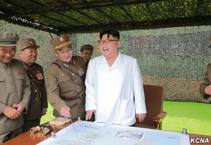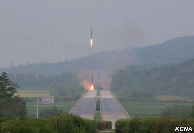 Pchjongjang, 6. září čučche 105 (2016) (KCNA) – Kim Čong Un, předseda Korejské strany práce, předseda Komise pro státní záležitosti KLDR a vrchní velitel Korejské lidové armády, dohlížel na cvičnou střelbu balistických raket hwasongských dělostřeleckých jednotek strategických sil KLA.