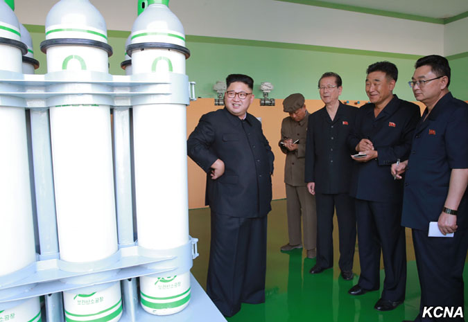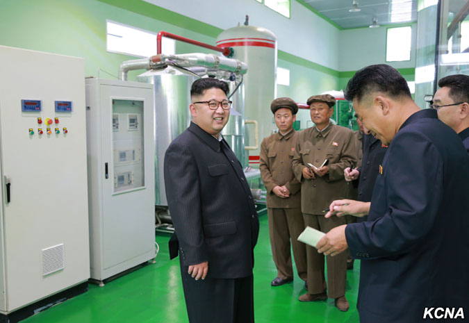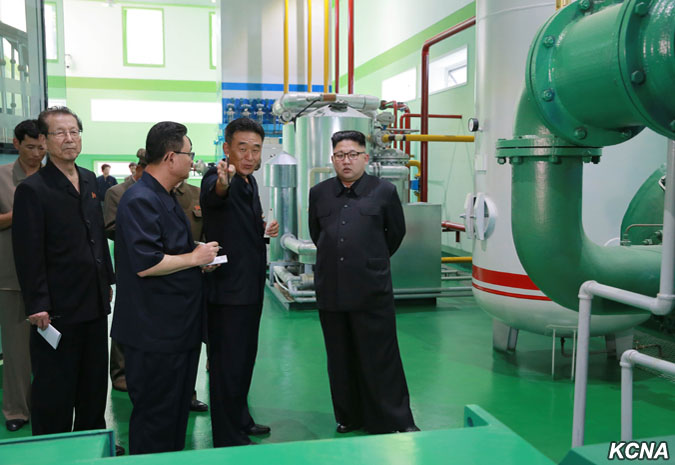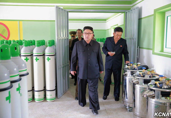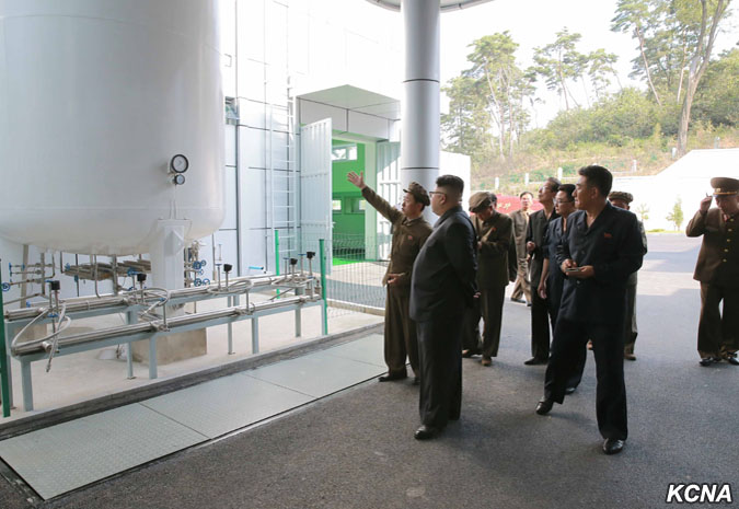 Pchjongjang, 15. září čučche 105 (2016) (KCNA) – Kim Čong Un, předseda Korejské strany práce, předseda Komise pro státní záležitosti KLDR a vrchní velitel Korejské lidové armády, poskytl polní pokyny nově vybudované továrně na lékařský kyslík.